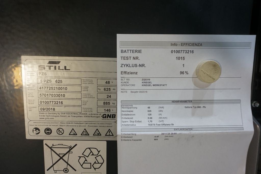 - Batterie: GNB, 2018, 48V, 625Ah, 80 - 100%
