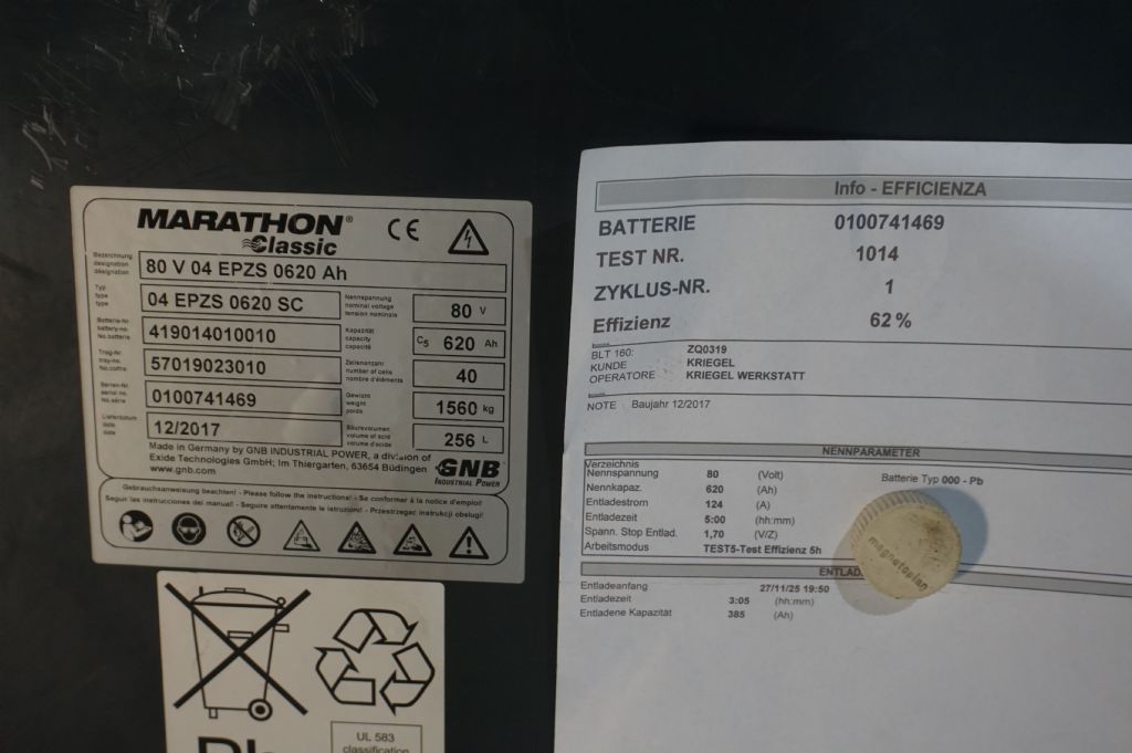 - Batterie: GNB, 2017, 80V, 620Ah, 60 - 80%